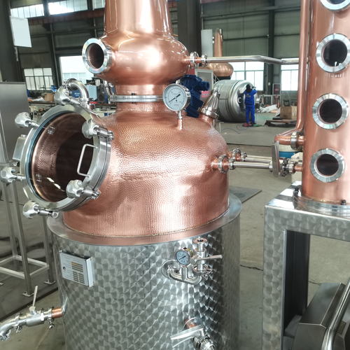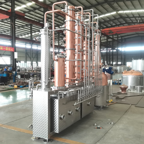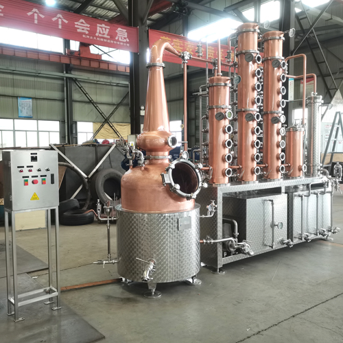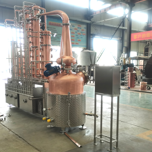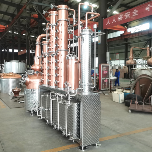 Unleash the full potential of your craft distillery with the Tengodistill TGD V500L. This 500L multi-purpose hybrid still is the ultimate asset for producing a diverse portfolio of premium spirits. It masterfully combines a classic copper pot still—ideal for creating rich, flavorful whiskies and brandies—with a towering, multi-plate copper rectification column for producing exceptionally clean, high-proof neutral spirits for vodka or gin. Featuring an explosion-proof agitator for handling any mash thickness and a comprehensive layout, this turnkey system provides the control, flexibility, and efficiency needed to scale your brand and innovate without limits.