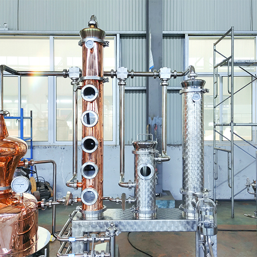 Unleash the full potential of your craft distillery with the Tengodistill TGD M150L. This 150L multi-purpose hybrid still is the ultimate asset for producing a diverse portfolio of premium spirits. It masterfully combines a classic copper pot still—ideal for creating rich, flavorful whiskies and brandies—with a towering, multi-plate copper rectification column for producing exceptionally clean, high-proof neutral spirits for vodka or gin. Featuring an explosion-proof agitator for handling any mash thickness and a comprehensive layout, this turnkey system provides the control, flexibility, and efficiency needed to scale your brand and innovate without limits.