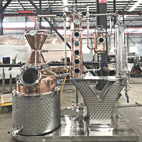 Unleash the full potential of your craft distillery with the Tengodistill TGD M150L. This 150L multi-purpose hybrid still is the ultimate asset for producing a diverse portfolio of premium spirits. It masterfully combines a classic copper pot still—ideal for creating rich, flavorful whiskies and brandies—with a towering, multi-plate copper rectification column for producing exceptionally clean, high-proof neutral spirits for vodka or gin. Featuring an explosion-proof agitator for handling any mash thickness and a comprehensive layout, this turnkey system provides the control, flexibility, and efficiency needed to scale your brand and innovate without limits.